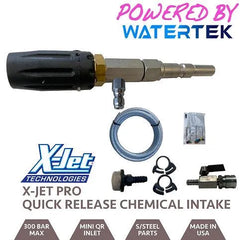 A chemically resistant on/off ball valve supplied with VITON seals allows the chemical supply to be turned off for long range rinsing after the application process, this also prevents back syphoning of chemical through the X-Jet once removed from the lance. We provide 5m of suction hose with a weighted suction filter and check valve to prevent leakage into your chemical supply.