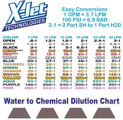 The Colour Coded Proportioners allow you to dilute the water to a chemical mix ratio of your choosing using your X-Jet. Please see the proportioner dilution chart above to determine the correct colour proportioner which best serves your application. (Complete pack included in the X-Jet Kits)